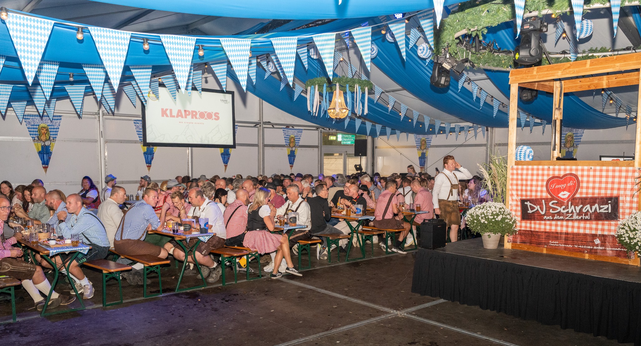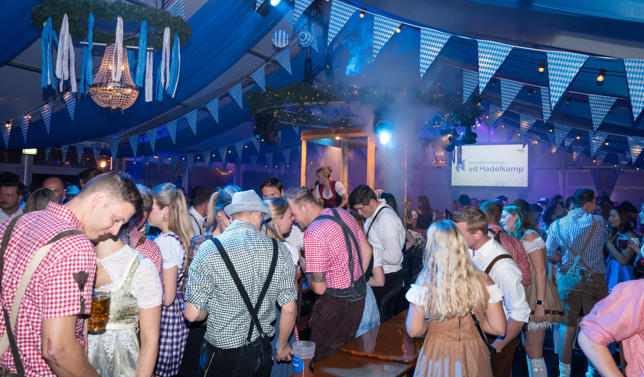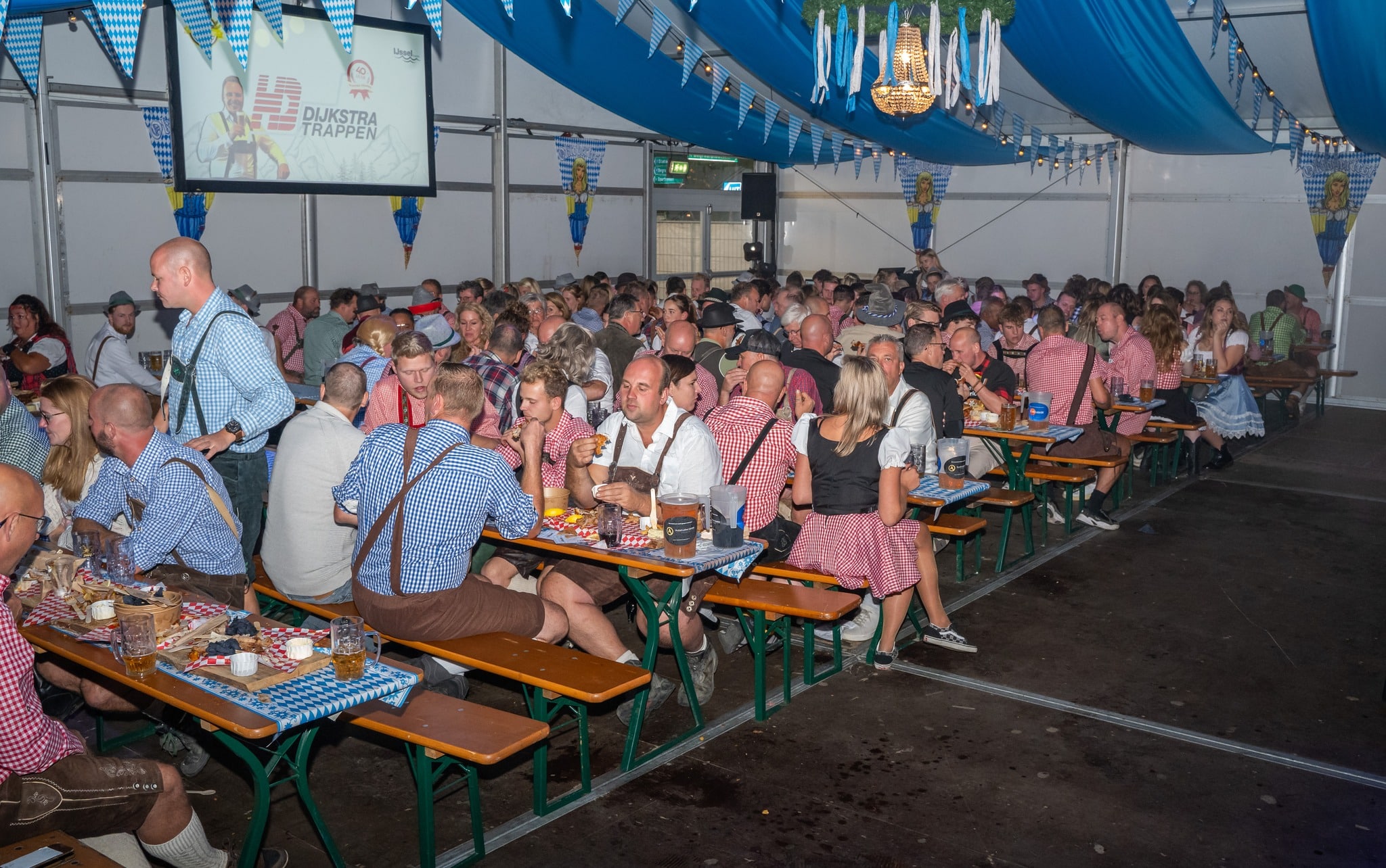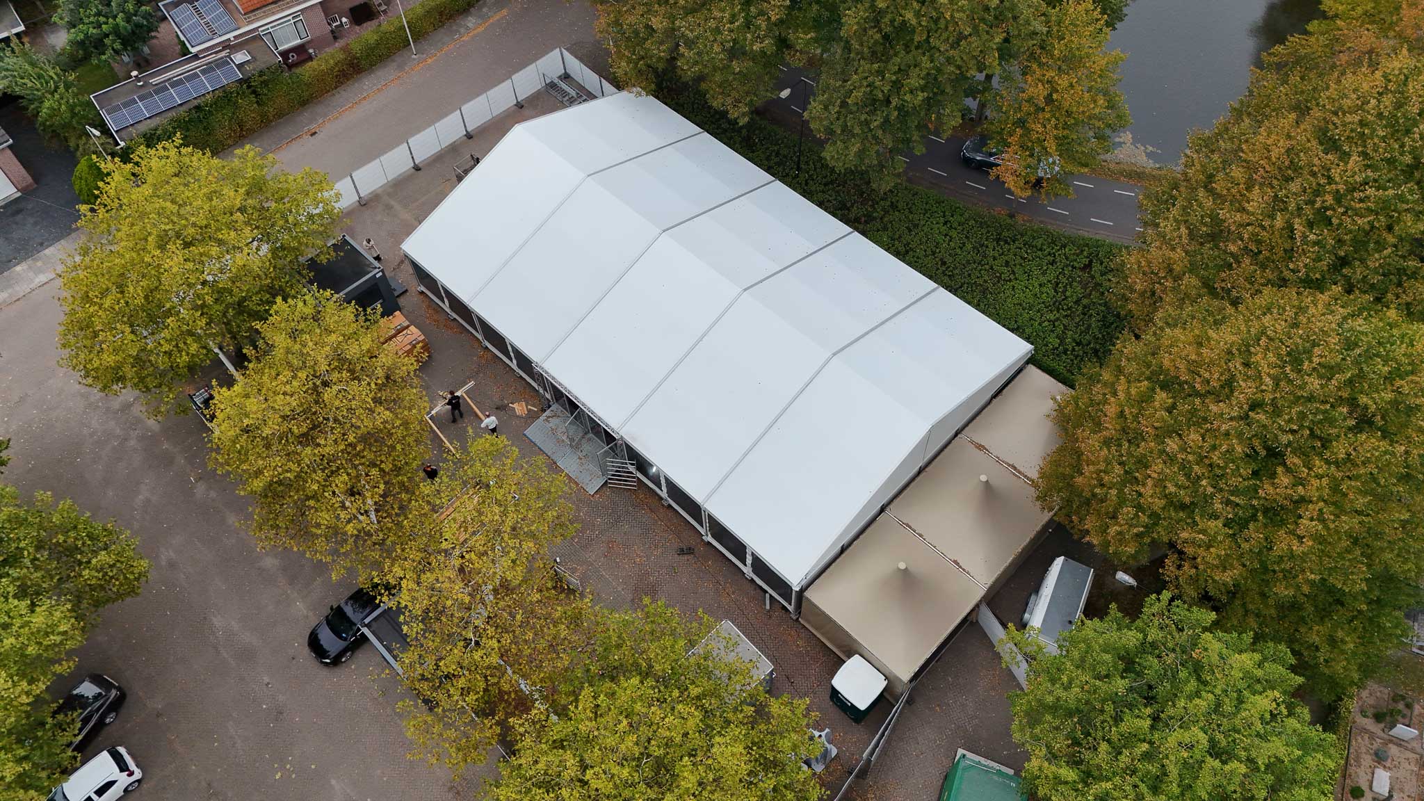 Voor het Oktoberfest aan de IJssel in Oudewater plaatsten we één ruime aluhal, aangevuld met drie pagodetenten. Een solide en sfeervolle opstelling die perfect aansloot bij het bruisende feest aan de rivier.