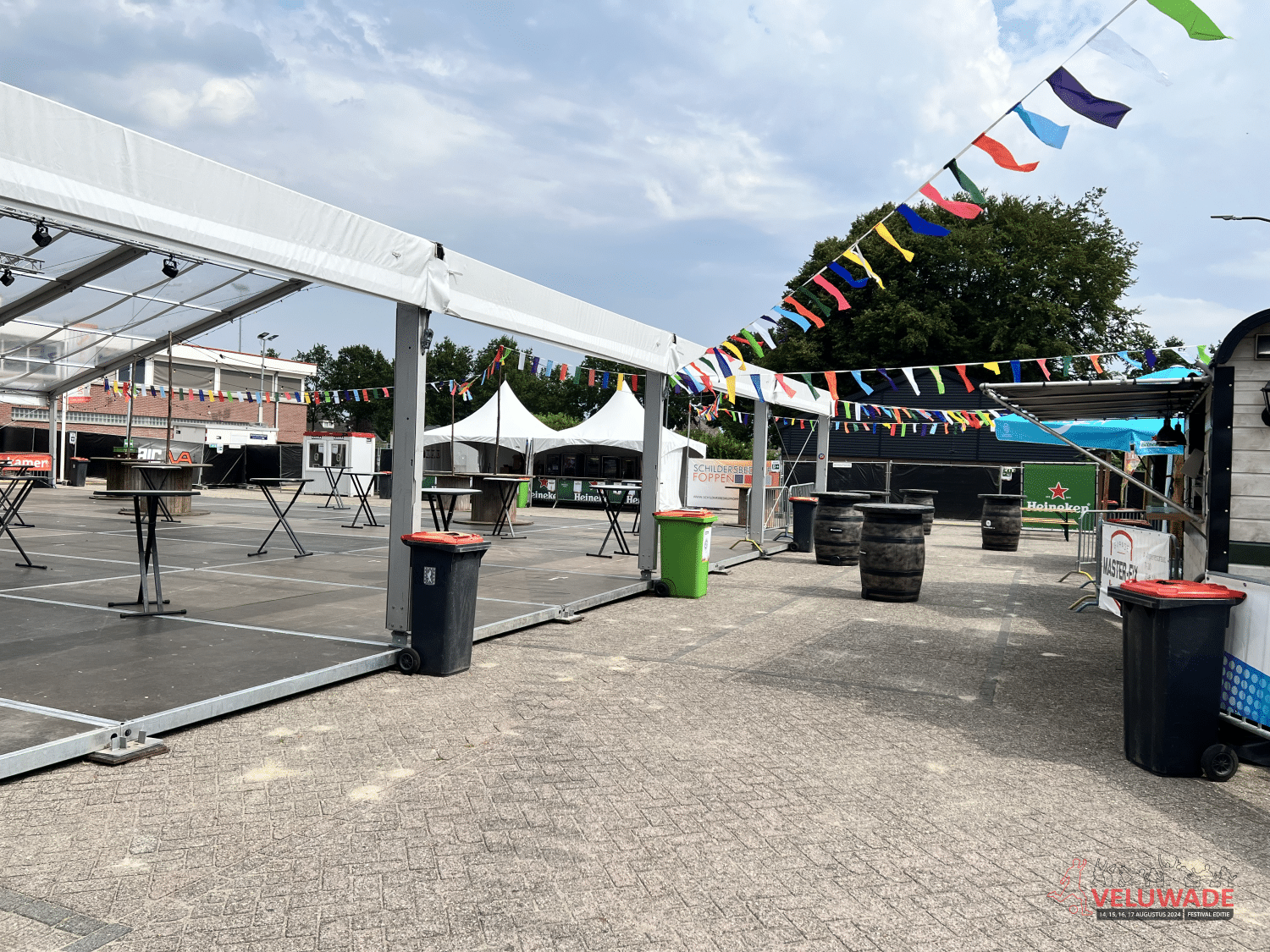 Tijdens het Veluwade festival bouwden we een grote aluhal met twee geschakelde pagodetenten. Samen vormden ze het hoofdpodium van het evenement. De combinatie van robuust en stijlvol gaf het festival een centrale blikvanger waar muziek en beleving samenkwamen.